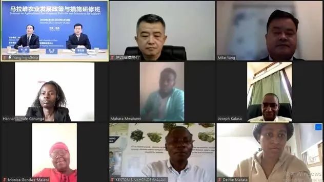 本期研修班共14天,共安排12次专题讲座和4次专题研讨活动。邀请了西北农林科技大学农业经济管理、农业生产与环境保护、生态农业等领域10余位知名专家参与授课,邀请学员代表参与线上研讨交流,分享农业发展政策制定和产业实践经验。研修班课程内容丰富、形式多元,得到参训学员的一致好评。培训期间全体学员克服时差、网络等因素影响,积极参加课堂学习以及各项研讨交流活动,围绕农业政策制定、农业发展实践等相关专题与授课专家进行了深入探讨。通过培训全面分享了中国在农业产业结构调整、农村集体经济发展、农业金融支持、乡村振兴等方面的经验做法,为马拉维现代农业发展提供了一定借鉴,加深了与马拉维在现代农业发展领域的相互了解。