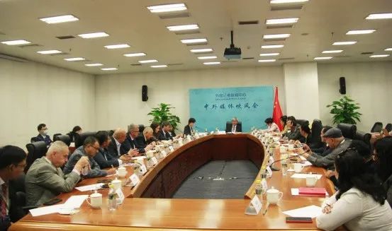 图为张海舟大使与媒体代表合影