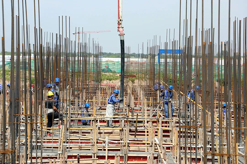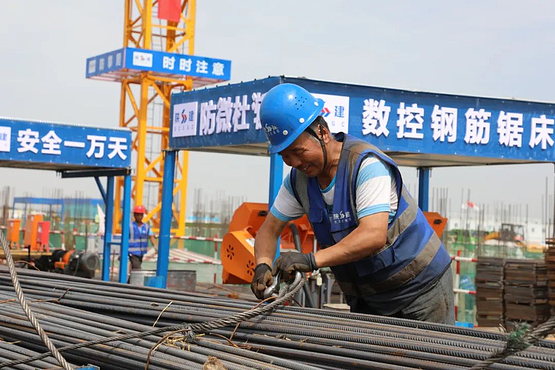 夏日炎炎,6月21日,记者在杨凌职业技术学院滨河校区项目建设现场看到,塔吊林立、机器轰鸣,工人们挥汗如雨、抢抓工期,洋溢在项目建设现场的热情持续升温,一派繁忙的建设场景呈现在眼前。