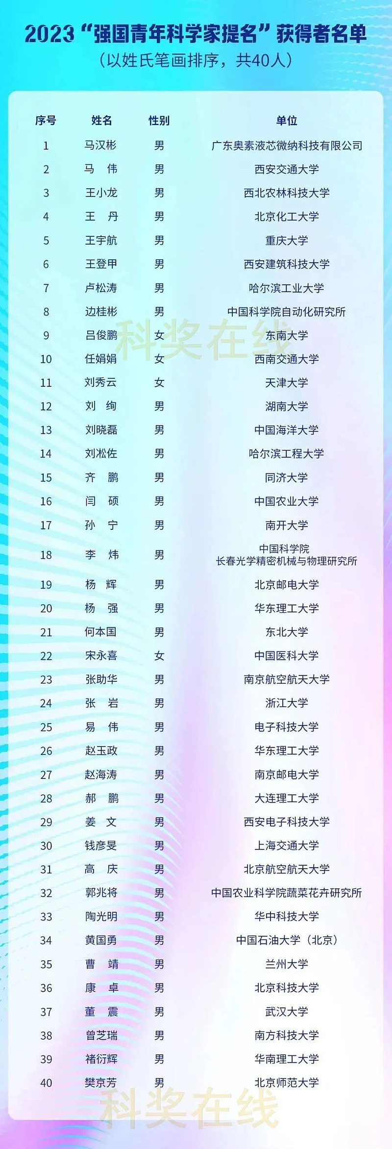 通过领域推荐和专家推荐,最终产生了10名“强国青年科学家”和40名“强国青年科学家提名”。其中陕西省共有5人上榜,西北农林科技大学王小龙荣获“强国青年科学家提名”。