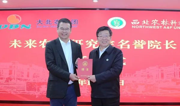 10月26日,西北农林科技大学(简称:西农大)与北京大北农科技集团股份有限公司(简称:大北农集团)在西农大交流中心签订战略合作协议,西农大校长吴普特和大北农集团董事局主席邵根伙见证签约,邵根伙同时受聘为西农大未来农业研究院名誉院长。