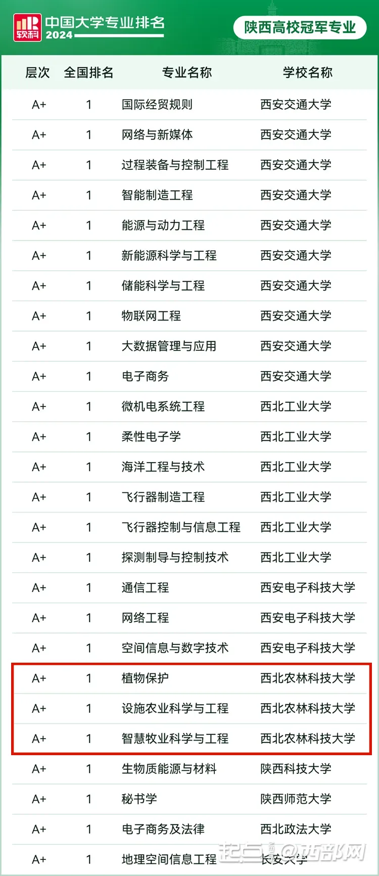 陕西高校上榜专业
