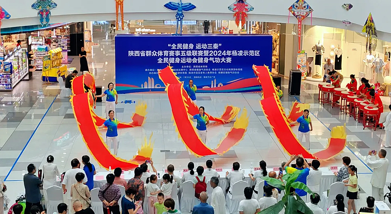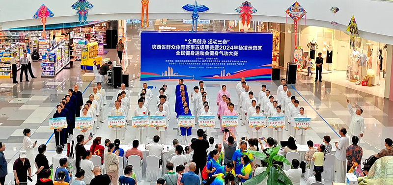 7月30日,“全民健身 运动三秦”陕西省群众体育赛事五级联赛暨2024年杨凌示范区全民健康运动会健身气功大赛在杨凌万达广场举办。