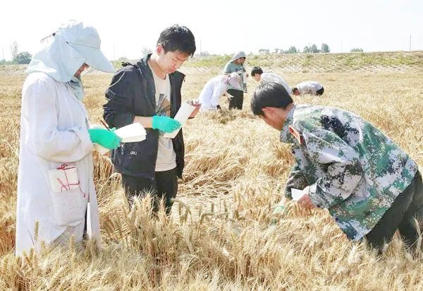 西北农林科技大学学生在曹新庄试验农场开展小麦选种。