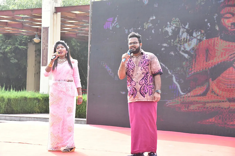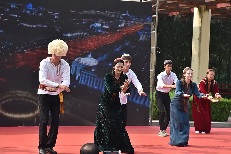 随后,来自吉尔吉斯斯坦、土库曼斯坦、斯里兰卡、塔吉克斯坦等国家的留学生以及中国学生竞相登台,意义深远的情景剧、优雅悦耳的合唱、热情奔放的舞蹈等精彩节目轮番上演,现场观众叫好声连连,气氛热烈。