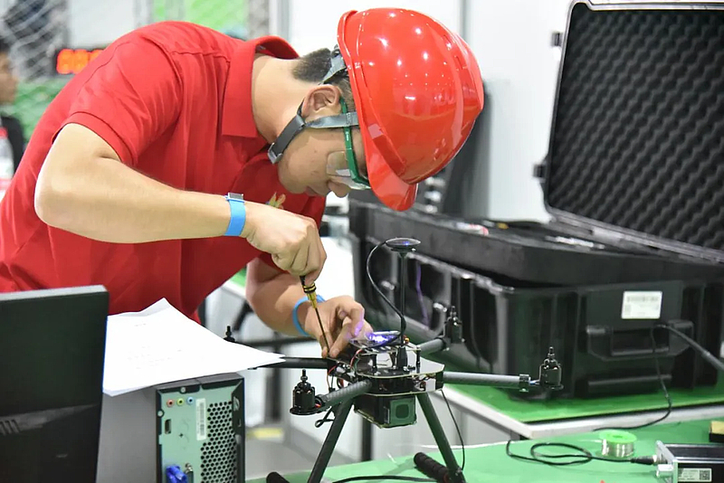 来自陕西国防工业技师学院的莫松今年参加的是无人机装调检修项目比赛。随着比赛开始的号令响起,在现场,莫松首先按照规程快速准确地完成无人机的装配,包括电机、电调、飞控系统等关键部件,随后,在模拟的故障环节中,他迅速识别并修复飞行问题,寂静的赛场内,空气中好像都弥漫着科技的气息。