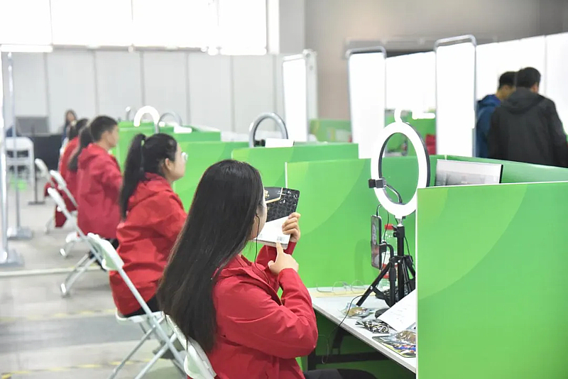 赛场上,选手“剑拔弩张”拼成绩;赛场下,展位招待客商忙不停。