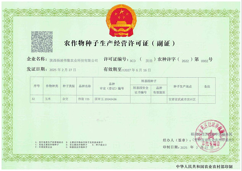 2月27日,陕西杨凌伟隆农业科技有限公司工作人员高美林来到示范区政务服务中心B12窗口办理《农作物种子生产经营许可证》变更业务。