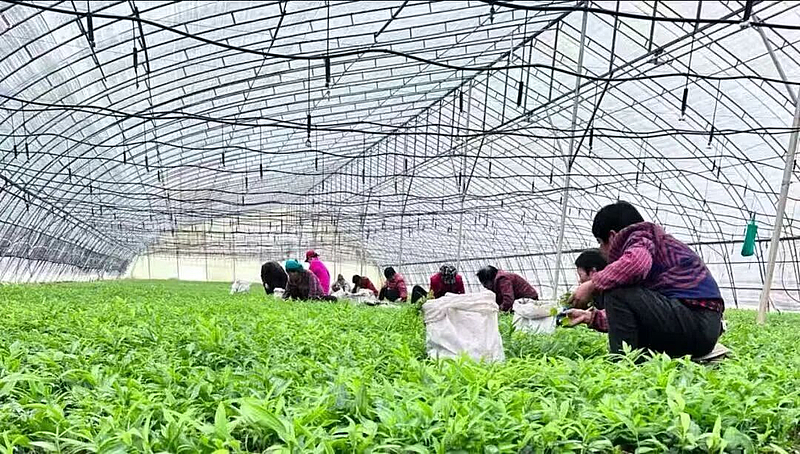9月19日,秋阳正好,杨凌现代农业融合体验园内的育苗大棚里,一片绿意盎然的黄精苗生机勃勃,工人们正在田间劳作。这片充满生机的育苗基地,正是陕西秦蕴慧耕农业科技有限公司以科技激活农业新质生产力的生动实践现场。
