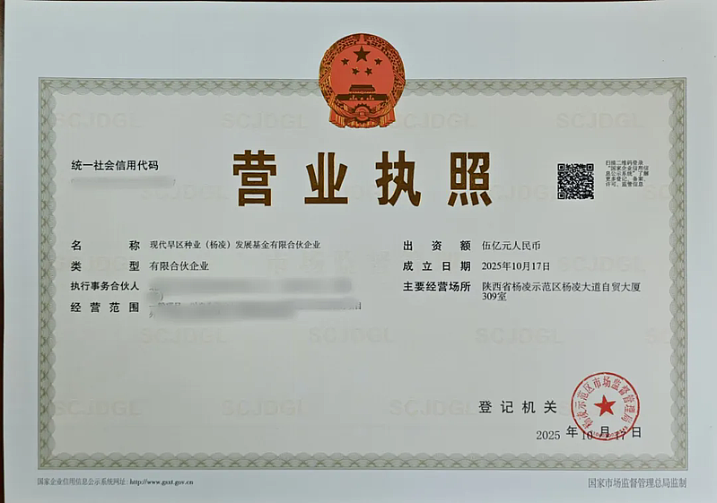 10月17日,记者从杨凌示范区地方金融监督管理局了解到,现代旱区种业(杨凌)发展基金在杨凌完成注册并取得营业执照。这将是陕西首只聚焦现代种业发展的专项基金。