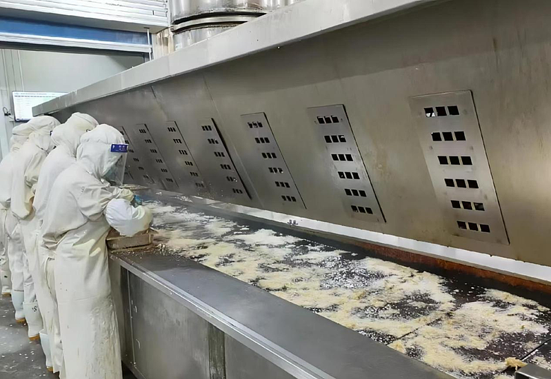 在杨凌希望食品有限公司,记者从监控里看到,厂房内滚烫的油锅里,酥脆的小酥肉滋滋作响;生产流水线上,香酥萝卜丸、串串牛肉、肥牛砖等系列产品源源不断下线,经过分拣、包装、装箱,迅速被运送到备货区。