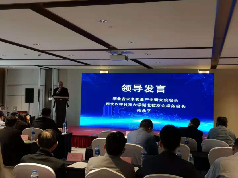 湖北省未来农业产业研究院院长、西北农林科技大学湖北校友会常务会长南永平在会上致辞。他说,湖北省未来农业产业研究院,是西北农林科技大学校友企业家联盟,与武汉市临空经济开发区农发投集团联合创建的农业全产业链创新研究平台。研究院从未来农业产业发展的角度,对标国际先进经验,从中国实际出发,提出全新的产业模式和落地方案,整合校友及相关资源,做成“产学研一体化”的平台。南永平用陕西话欢迎大家到中华农耕文明发源地,十三朝古都投资兴。