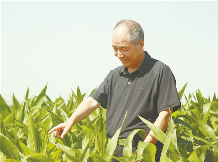 薛吉全在试验基地观察玉米生长情况。 (资料图)