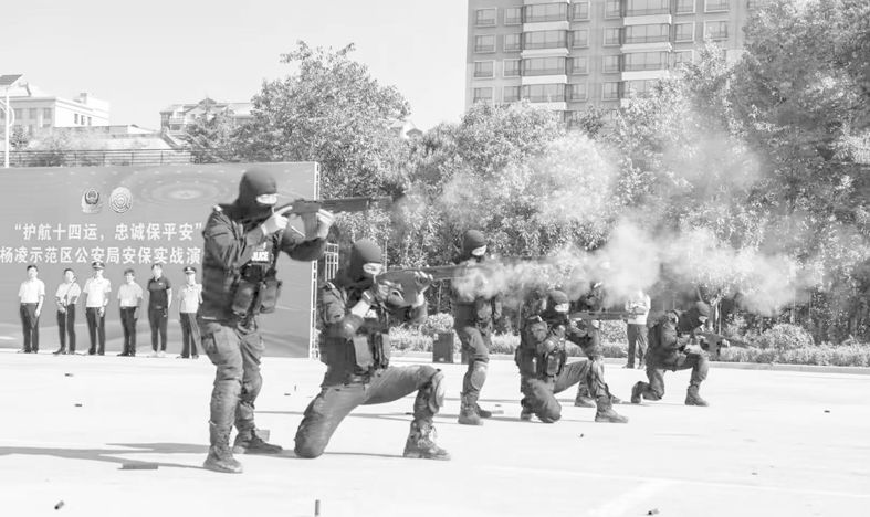 8月6日上午,为了做好疫情防控工作,以“护航十四运,忠诚保平安”为主题的十四运会杨凌赛区安保实战演练活动在陕西省水上运动管理中心举行。活动现场,参演干警精神饱满、斗志昂扬,按照统一指令迅速进入演练场。特警、交警、治安民警先后组织开展了防暴枪战术、查缉战术、交警手势操等科目演练。接着,消防救援支队在渭河湿地公园水域开展了O型驾驶救援、水陆两栖全地形车、活饵救援、翻舟自救、三种泳姿等科目演练。