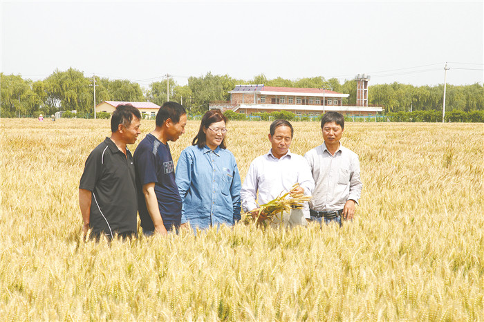 西北农林科技大学教授吉万全(右二)和团队成员在田间查看小麦长势。(资料图)