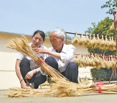 杨凌职业技术学院研究人员查看培育的小麦新品种。万英俊摄
