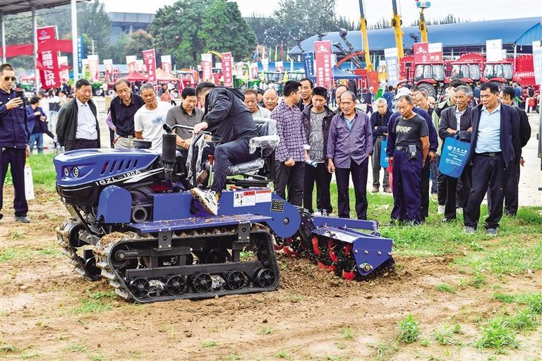9月21日,在第30届杨凌农高会E馆,一家农机制造商现场演示产品性能。 本报记者 袁景智摄