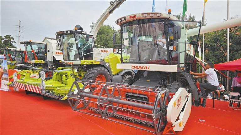 9月21日,在农高会国际农业智能装备展上,参观者了解收割机产品。 本报记者 许奥博摄