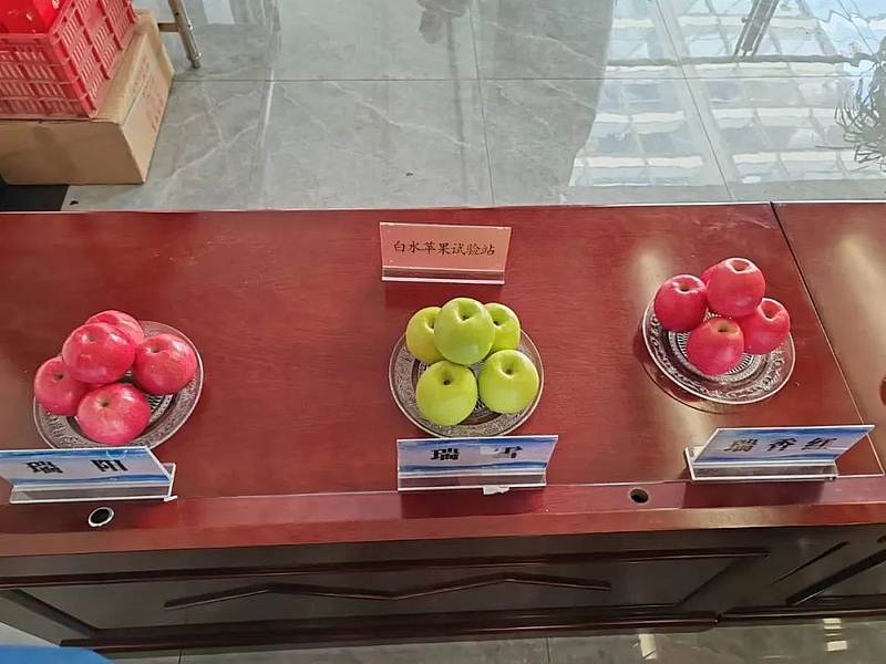 在陕西白水县果农中流传着一句话,“苹果种三瑞,效益翻两倍”,“三瑞”就是指瑞阳、瑞雪、瑞香红系列晚熟苹果品种,其名字富有“瑞雪兆丰年、瑞阳送吉祥、瑞香红福瑞中华”之意。瑞雪果皮为黄绿色,果面光洁、果肉细脆、酸甜适口、耐储性高;瑞阳色泽艳丽、口感好;瑞香红香气浓郁、口感酸甜、品质优、商品率高。