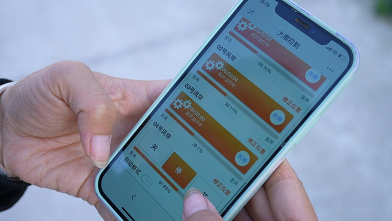 在大棚里安个“棚掌柜”,无论何地何时,动动手指通过APP就能轻松掌握和控制设施大棚里的通风、遮阳等各类操作。只要是在有手机信号的任何地方,即便是几十公里外都可以实现如此远程操作。