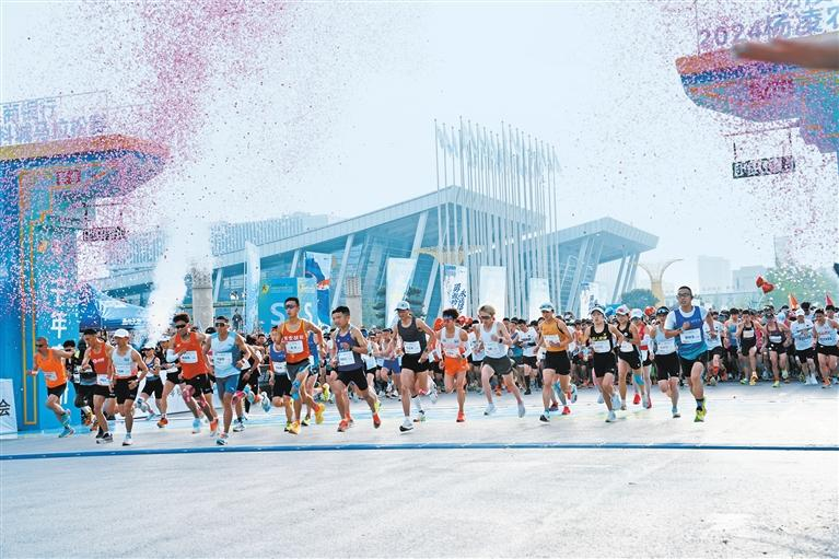 7时30分,发令枪响,比赛正式开始,选手们伴着欢快的音乐向前奔跑。