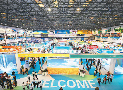 观众在第三十届中国杨凌农业高新科技成果博览会上合组织国家展台参观。新华社记者 张博文摄