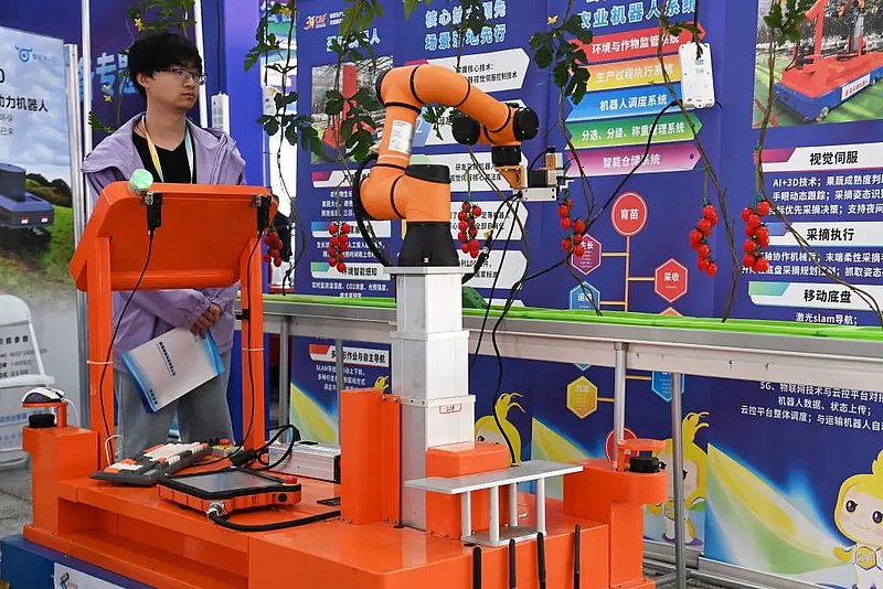 本届农高会25日在“中国农科城”陕西杨凌举办。开幕首日,来自国内外的20余款农业机器人登台比拼,智能采摘、自动播种、无人驾驶等技术让人眼前一亮。
