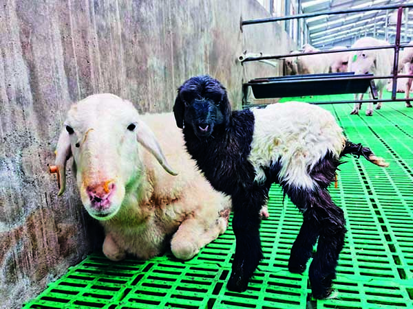 世界首例体细胞克隆顶级种用藏羊(右)。