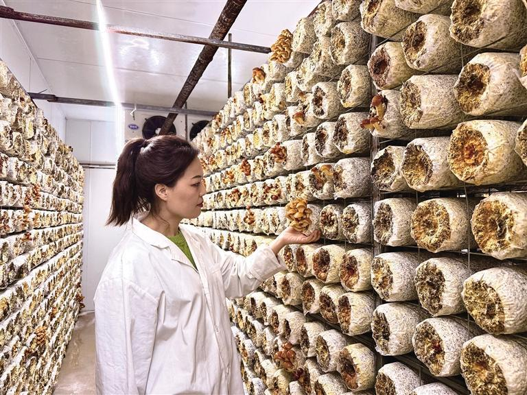 3月10日,杨凌知君菌业科技工程有限责任公司(以下简称“知君菌业”)生产车间内,智能设备高效运转,负责人沈道银专注地查看食用菌生长状况。