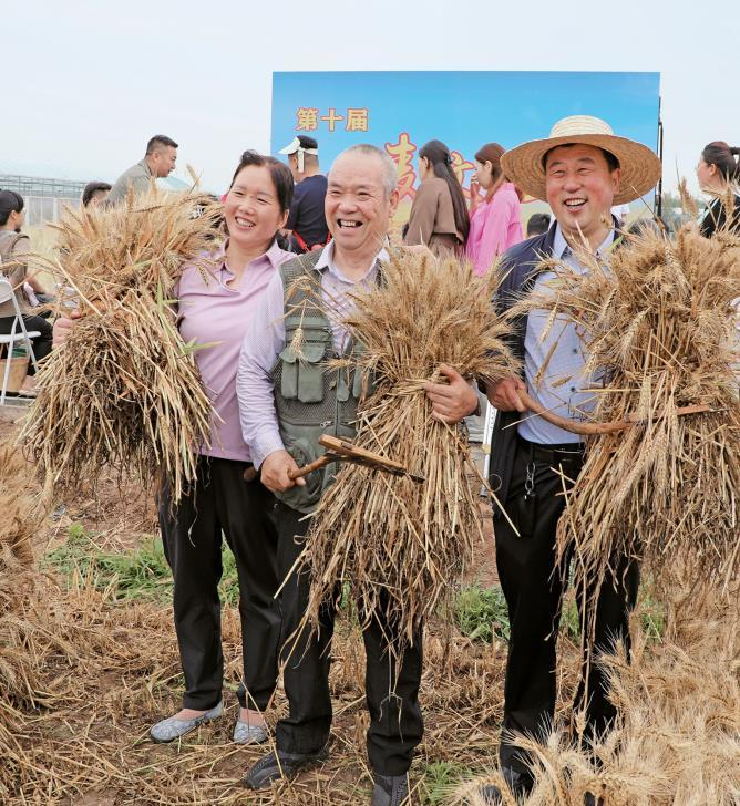 6月7日,在第十届杨凌小麦文化节现场,群众分享收获的喜悦。 本报通讯员 万英俊摄