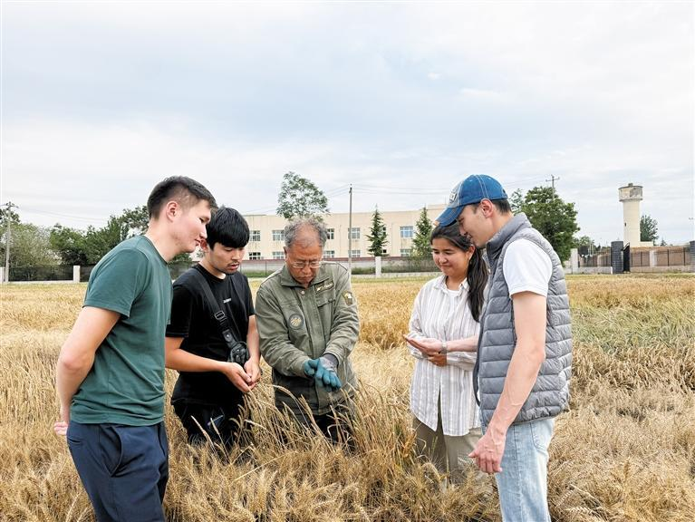前不久,来自哈萨克斯坦的青年农科人才同老师一起观察小麦生长情况(资料照片)。 本报记者 付玉玮摄