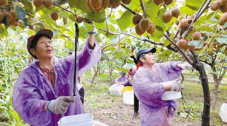 9月19日,五泉镇王上村村民在采摘猕猴桃。 本报通讯员 行波摄