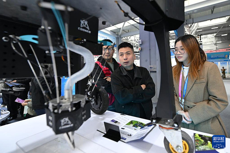10月25日,参观者在杨凌农高会深圳展区了解智能农业机器人。新华社记者 李一博 摄