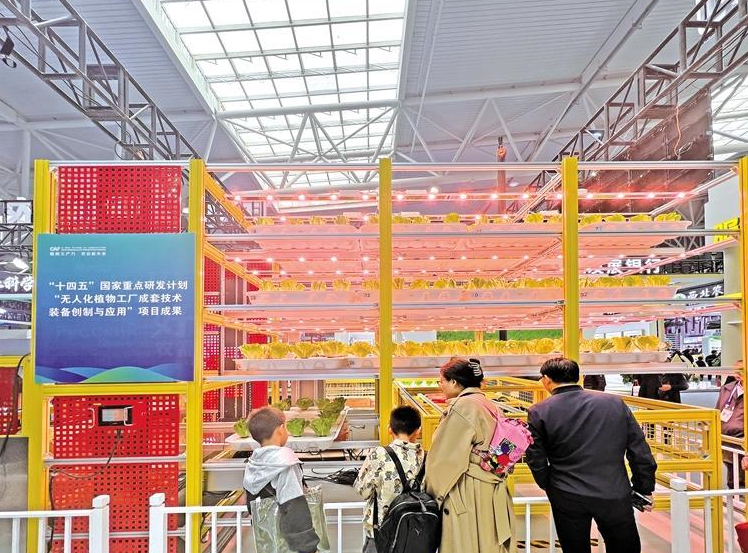 10月25日,第32届杨凌农高会D馆珠海益品农业科技有限公司展台前人头攒动,无人化植物工厂吸引了不少参会者驻足观看。