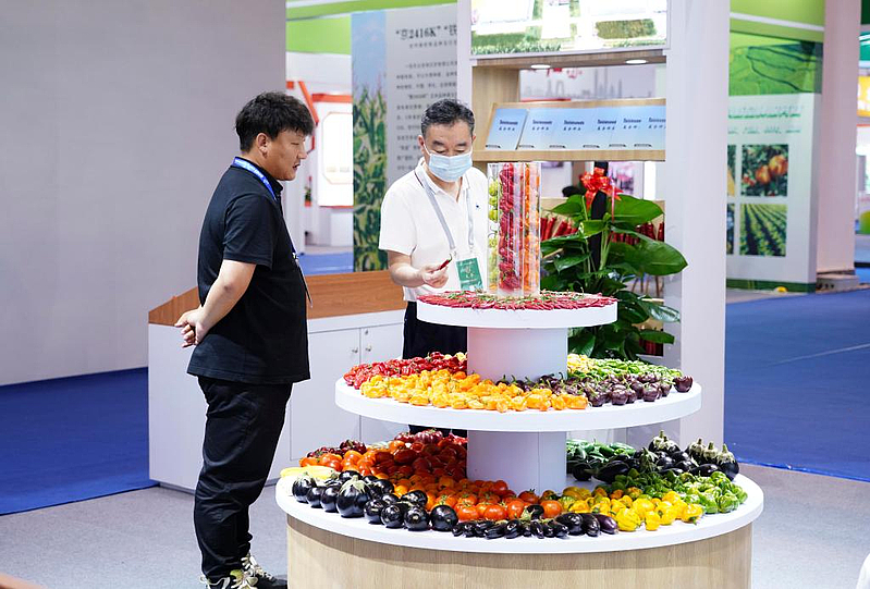 2023中国种子大会暨南繁硅谷论坛在海南三亚举行。4月1日,与会者在参观论坛展览。新华社记者 樊雨晴 摄