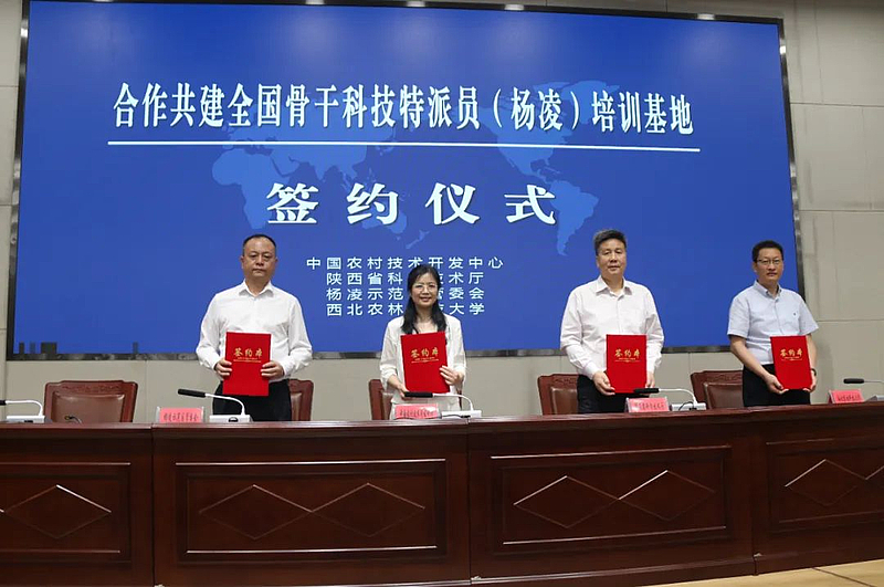开班式上,由中国农村技术开发中心、陕西省科学技术厅、杨凌示范区管委会、西北农林科技大学共同签署了关于合作共建全国骨干科技特派员(杨凌)培训基地的协议。