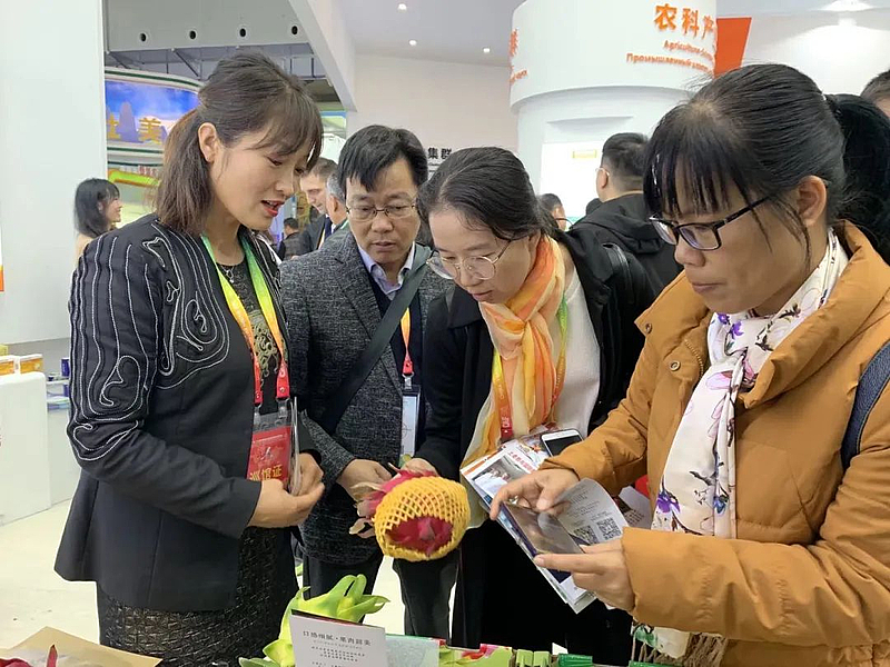 技术成熟后,如何推广?王艳就想到了参加农高会,2015年开始,青皮她园火龙果基地正式亮相农高会,向全国各地的农民朋友展示他们基地的火龙果和相关的种植技术。