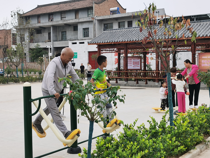 今年,汤家村以花园乡村建设为契机,填平了垃圾坑、种植了绿植,改善了道路、照明等设施,并且在群众家门口修建起了主题公园,文体部门也为村子配备了篮球架、戏沙区、太空漫步机、太极推柔器等体育休闲健身设施,让这个曾经人人嫌弃垃圾坑成为了村内的“网红地”。