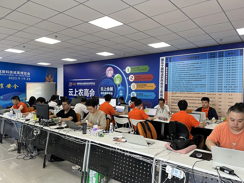 9月6日,走进云上农高会工作组办公室,平台优化设计、技术优化升级、技术调试、平台测试、展商展团资料上传、平台内容发布、直播活动发布……各项筹备工作都在紧张并有序地进行着,现场一片热火朝天的忙碌场景。