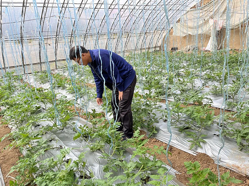 育种科研人员王志梅自研究生毕业后,就在金棚种业与番茄打交道。“我目前负责了两个棚的番茄育种,一棚秋茬和一棚冬茬。做一个杂交的筛选和新品种的展示。”王志梅这边检查完新定植的品种苗情,又忙着去给一个月前定植的番茄新品种绑枝吊蔓。