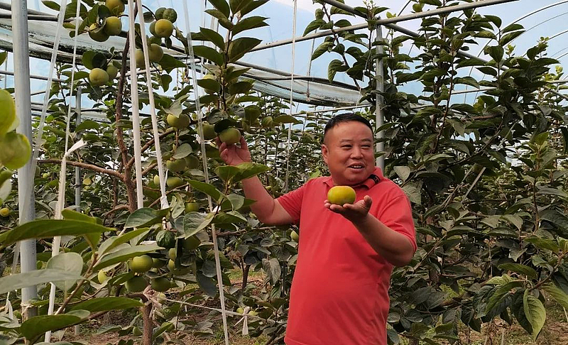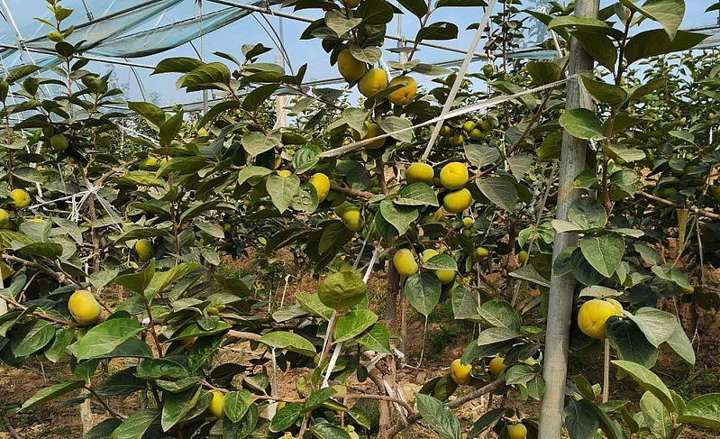 入秋后,走进太秋甜柿种植基地,放眼望去,一颗颗个头饱满的柿子缀满枝头,散发出阵阵果香,令人垂涎欲滴。