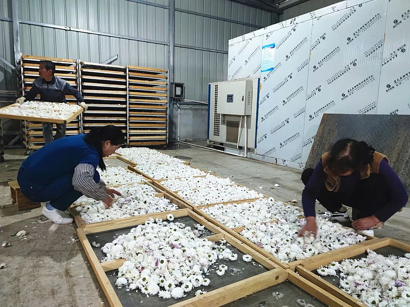 刚刚去基地给村民强调了采摘菊花时的注意事项,西北农林科技大学化学与药学院副教授段琦梅又赶到加工厂,查看烘干情况,她说:“当时选择品种时,我们考虑了种植、加工技术和销售情况,最终选了七月贡菊、金丝皇菊、婺源皇菊等品种,现在来看,这类菊花不管是鲜花还是干花,品质都特别好。”