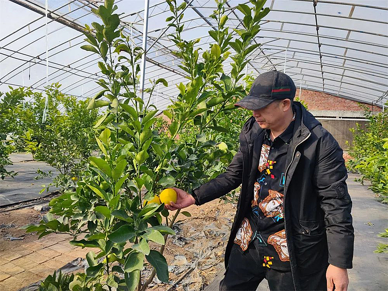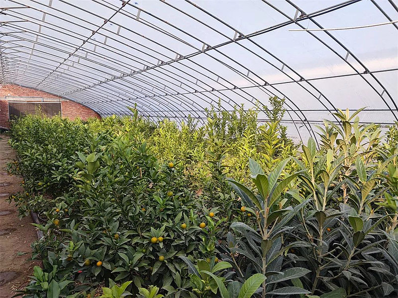 12月1日,室外温度已低至零下,但走进杨凌丰腾农业家庭农场的大棚内,却温暖如春。棚内一棵棵齐腰高的金桔树生长茂盛,金黄色的小金桔挂在枝头,惹人垂涎,而农场负责人江正华正在仔细查看着果树的生长情况。