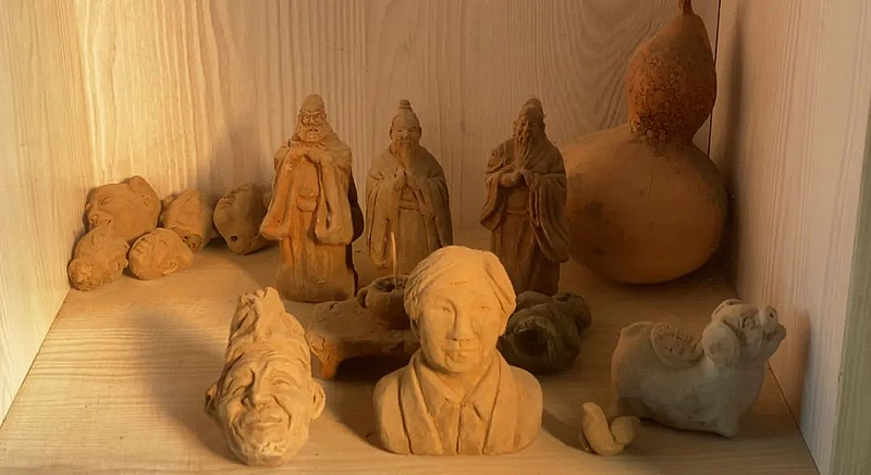 作为非遗传承人,在周晓鹏的家里,摆满了各式各样的泥塑作品,能有如今的技艺,这与他儿时的经历有关。