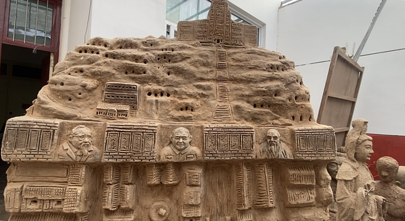 说起2023年,周晓鹏最得意就是这座叫《杨凌记忆》的泥塑作品,他指着作品中的细节,一一向记者介绍道:“这个上面有三号教学楼,当时学校没有院墙,就只有西农大这一个楼。这是杨凌的老街道,一个老火车站,两边儿是一个兽医学院,一个是农科所。”
