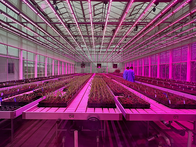 对标前沿的生物育种,杨凌中心各种“黑科技”比比皆是。例如,国内首创的LED无极调光温室,可根据玉米生长需求和外界光变化,实现光强动态调节,突破季节限制,针对玉米育种可做到4-5代/年的水平,比传统育种提速2倍多;国内最大的单倍体工厂化生产平台,年产百万株单倍体苗和几十万双单倍体,可以批量化创制优良种质,加速育种流程。