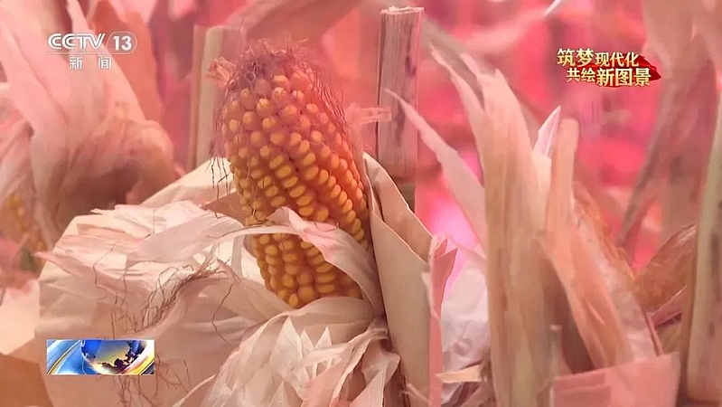 总台记者 侯潇扬:在我身后有三十多个温室,分别种植着处在不同生长阶段的玉米。这些温室跟大家印象中的可能不太一样,可以看到每个温室都有很多这种紫色的光带。