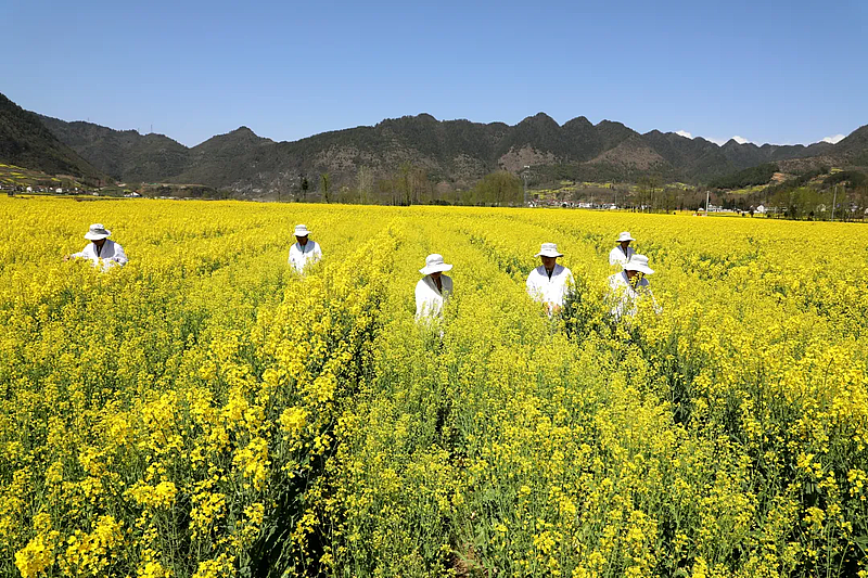 3月底,汉中的110万亩油菜花开正艳。金灿灿的油菜花与制种人,在秦巴山区描绘了一幅杨凌良种助丰收的幸福画卷。
