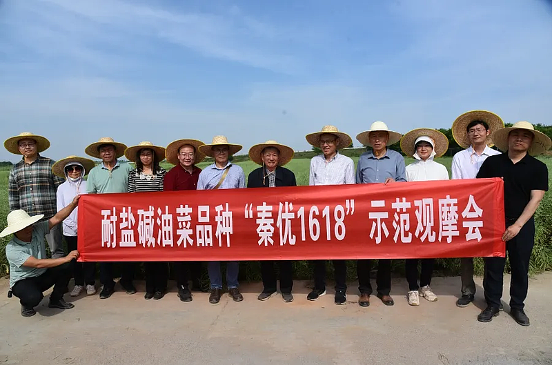 “从目前油菜长势来看,丰收在望,油菜籽粒均超过30粒,可以说我们的品种已经完全适应了这个地区的盐碱土壤,并实现了丰产。”5月7日,陕西省杂交油菜研究中心组织专家院士走进渭南市蒲城县荆姚镇常家村的油菜种植田中,调研秦优1618在盐碱地的实地表现,指导当地种植户掌握油菜采收技术要点。