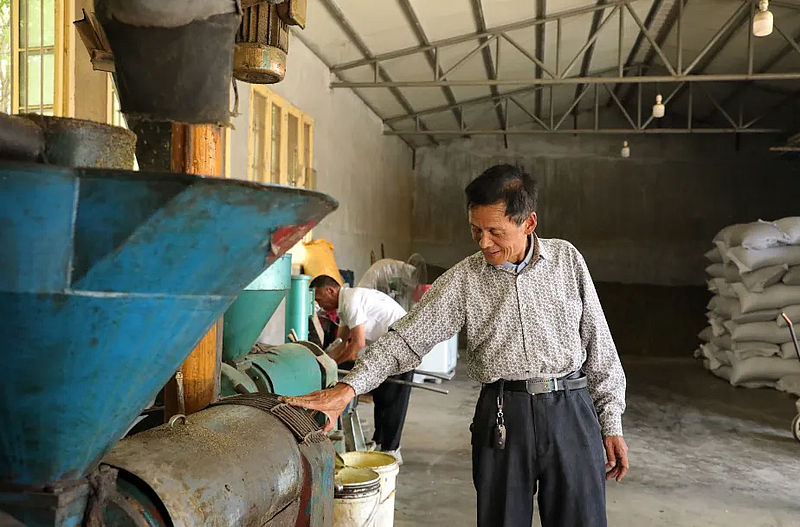 油坊经营人祝义辉已经有30多年的榨油经验,对油菜品性、出油率等榨油的关键要素了如指掌。“油的好坏一般要从颜色、香味、出油率来看,好菜籽榨出来的油又黄又亮,油质清透,品质越好闻起来气味也很香。”祝义辉说。